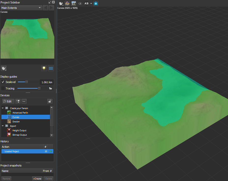 I randomised the map a number of times to find an interesting landscape that I would like to work with, and started changing some terrain data to alter water levels and the harshness of the landscape.